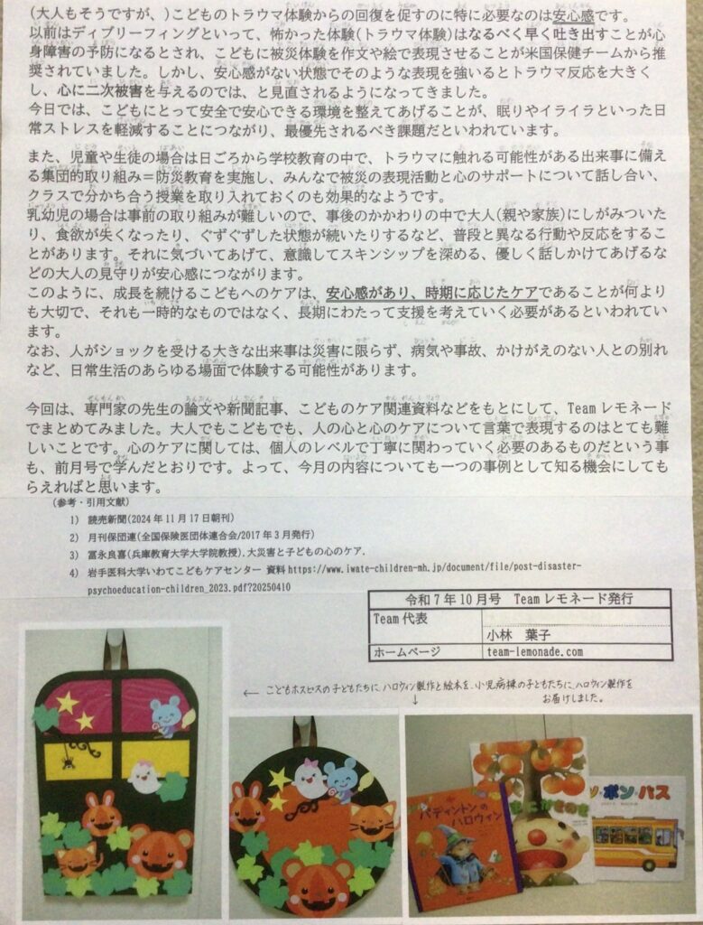 今月はりんどうの発行を予定しておりましたが、前月号の反響を受け予定を変更し、レモネード新聞で前月とリンクする内容をお届けいたします。